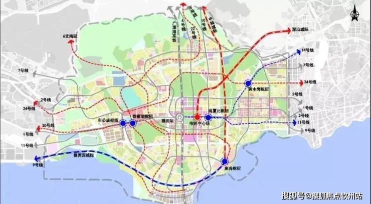 三轨交汇:地铁9号/4号/22号线(在建中)三轨交汇,直距约300米上梅林站;22号线开通后,直抵香蜜湖