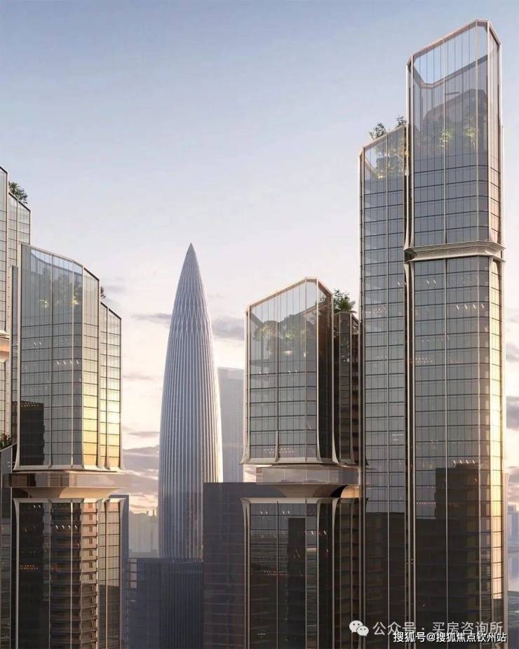 整体效果图看起来绝对高大上,逼格满满,看样子像中海操刀,另一个深湾玖序,也是最近豪宅新房流行的风格:公建化全玻璃幕墙,毕竟是核心 CBD,必须跟周围写字楼一样全部公建化外立面。