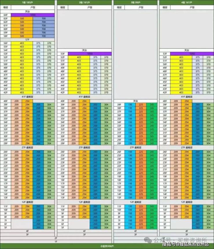 低区(5层起,150米以下):约209-304㎡,四房及以上大户型;