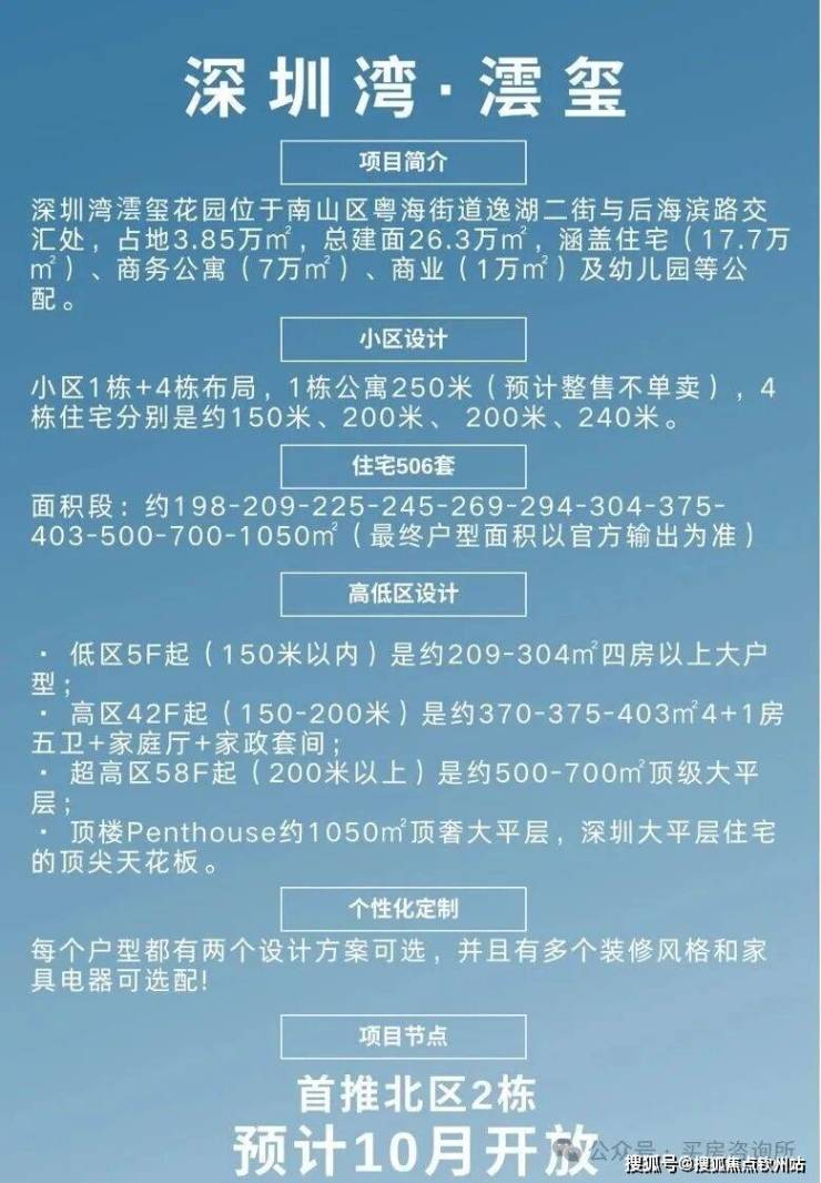 华润后海沄玺花园 营销中心24小时电话:400-031-6012【售楼中心☎☎已认证】项目位于深圳湾后海,主打顶豪住宅,预计10月开盘,户型多样,规划包含商务公寓和商业,售楼处提供24小时服务。