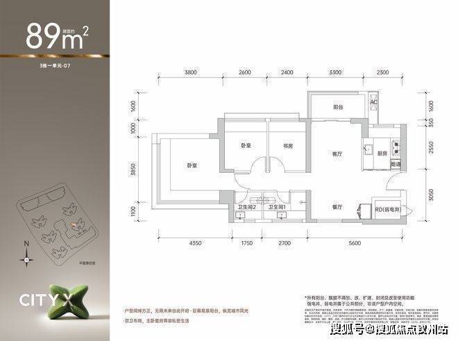 王炸户型 约89㎡3+1房两厅两卫(双娃家庭置业首选)