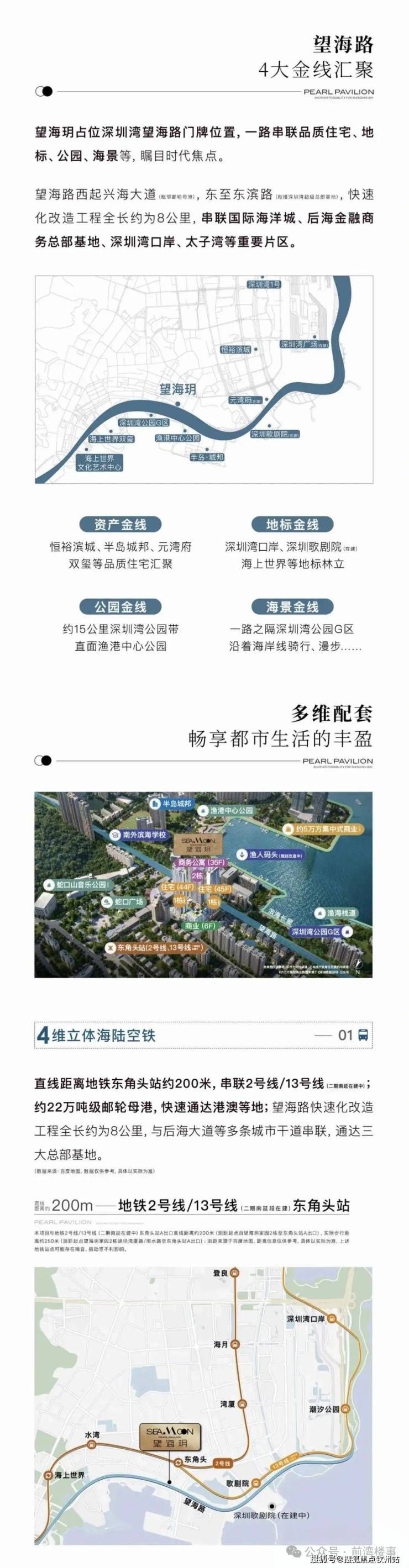 望海玥项目具体位于望海路和湾厦路交汇处,蓝漪花园以东、蛇口老街以南,毗邻蛇口广场,与地铁2号线及13号线(建设中)东角头站相距约200米。