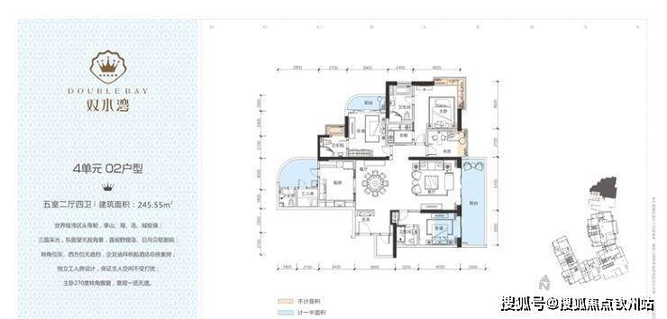245.55㎡五室二厅四卫,三面采光,洋溢轩昂气度;主卧270度转角飘窗,观野狸岛、日月贝及无敌海景,饱揽城市繁盛;本项目臻品单位,海景资源值得一世珍藏;