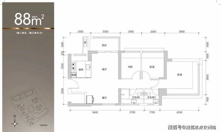 88㎡的3房2厅2卫,设计的是竖厅南北通透格局,客厅3.3米开间,,四开间朝南,主卧270°无转角飘窗,3个卧室分别做到了主卧15.63㎡/次卧7.54㎡/次卧6.96㎡(包含墙体飘窗),得房率约90%(包含赠送),阳台主朝西北或东北向。