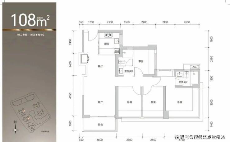 108㎡的4房2厅2卫,1栋2/3单元02/1栋1单元06户型,设计的是经典竖厅格局,客厅3.6米开间,四开间朝南,动静分区,4个卧室分别做到了主卧16.2㎡/次卧9.24㎡/次卧7.76㎡/次卧7.32㎡(包含墙体飘窗),得房率约90%(包含赠送),东南或西南朝向。