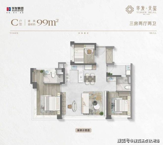 户型面积:建筑面积约99/112㎡ (新规产品,相当于传统建筑面积约120-150㎡户型);