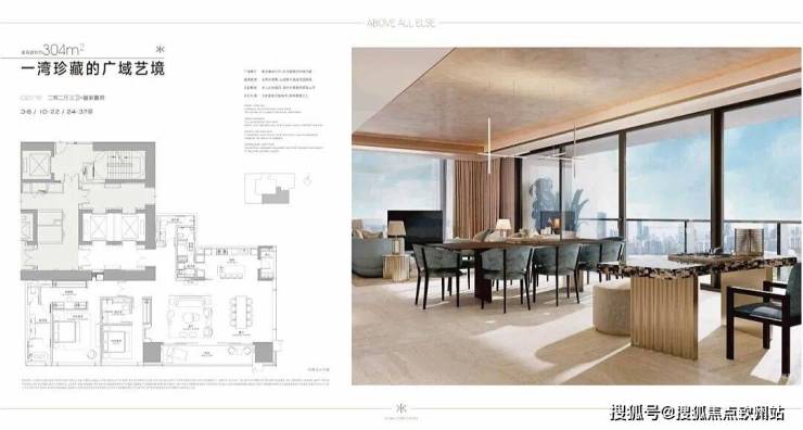 304㎡的起步户型就很有诚意,2房3卫+家政套间的设计,LKD一体横厅占了全屋过半面积,动静分区做得相当彻底,主卧是东南向双开间,采光和景观都没话说。327㎡的经典户型是3房4卫+家政套间,270°环幕视野,部分房源能直接看一线海景,除了书房之外,其余都是套间设计,私密性拉满。