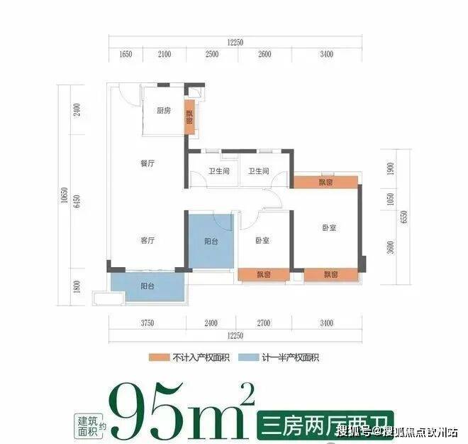 建筑面积约95㎡三房 | 小面积王炸户型,全盘仅售62套!