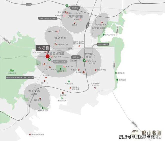 【轨】:双地铁无缝接驳(12/15号线四海站)本项目地下商业,已开通的12号线连接西部发展轴,未开通的15号线全长约27km,被称为前海环线;