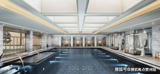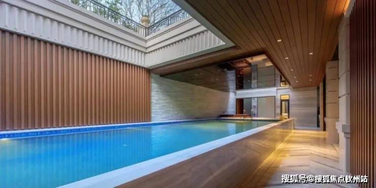 并且地下室层高约4.5米,总面积450㎡,三连厅设计,庭院处可以装得下一个13米长的游泳池,很有巨邸豪宅的气场。