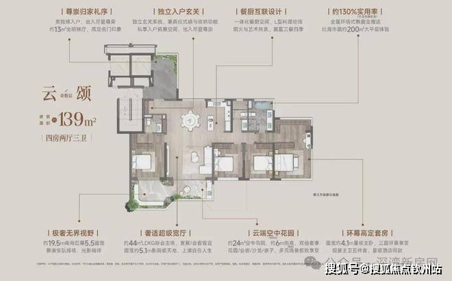 ·建面约139㎡「云颂」 四代浮岛大平层: