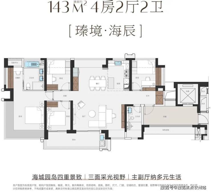 主力户型: 面积从114㎡到143㎡不等,纯四房设计