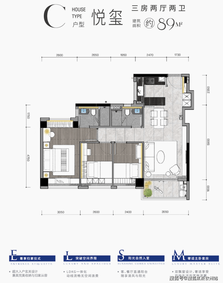 3、琴澳新城·四季峰景,总价区间:243-445万元/套(对应83-89㎡户型);