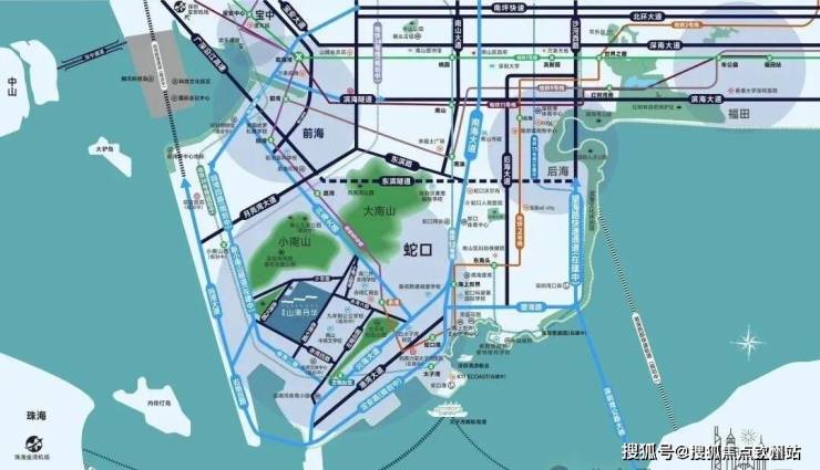 双湾地理优势:占据前海湾与蛇口湾交汇处,15分钟直达前海CBD,同步享受前海政策红利与蛇口国际生活配套。太子湾邮轮母港、妈湾跨海通道(在建)等交通枢纽加持,形成“海陆空轨”四维立体路网。