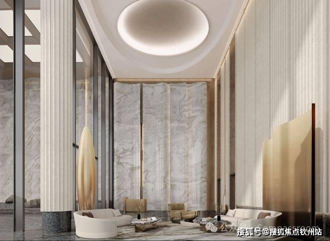 位于5层的二进礼序空中大堂,以“奢玉满堂”的核心理念精心雕琢,梦幻般的白玉照壁与安第斯山脉雪景石材地面的完美搭配,不仅彰显了非凡的雅致品味,亦寓意着生活的美好愿景。在材质的选择上,特别注重温润的质感,与高端客群所追求的生活品质及文化内涵完美契合,展现出独特的审美境界。