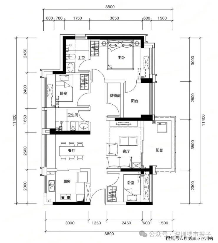 户型图鉴:81平米3+1房多变空间