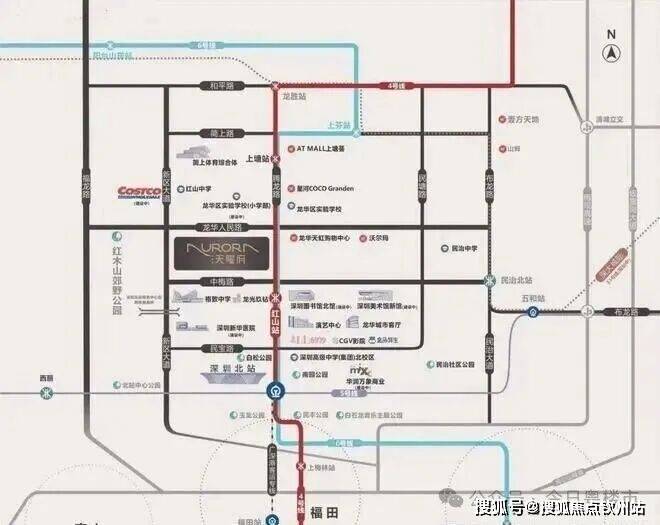 红山 承接数字龙华与北站总部发展的生活服务功能,是龙华高端中央生活板块。截止目前,土地资源稀缺的红山已 基本无纯粹住宅用地,正红山,值此天曜府。