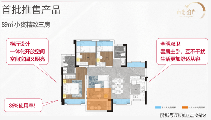 (2)89㎡三房:横厅设计,东南向,总价约117.5万起,单价约12000元/㎡。