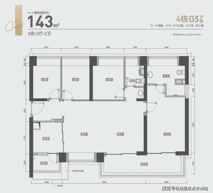 4栋、5栋:4梯5户,层高3.1米,01-02户型116平3房2卫,03、05户型142平4房2卫,04户型120平3房2卫;
