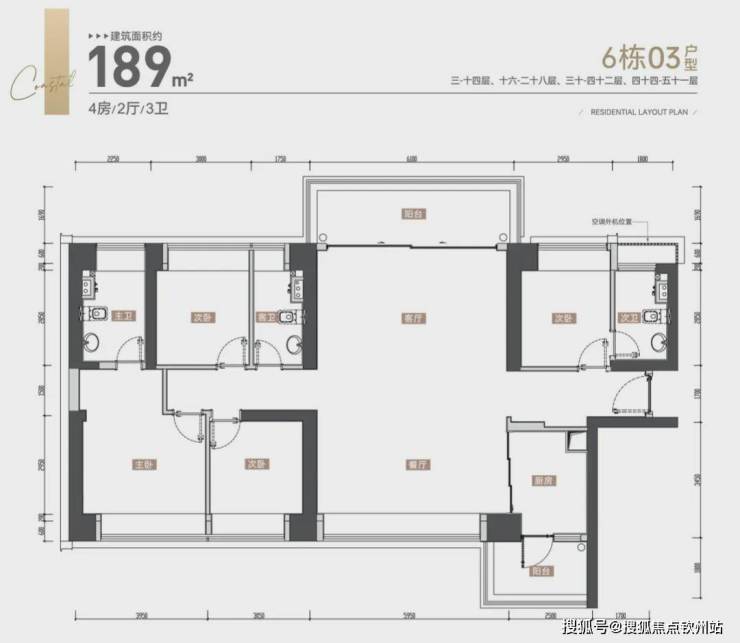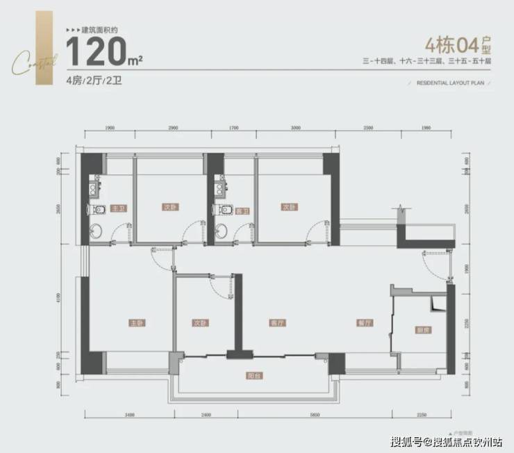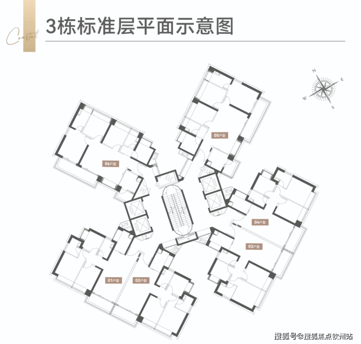 3栋:4梯6户,层高3.1米,01-04户型100平3房2卫,05-06户型120平4房2卫