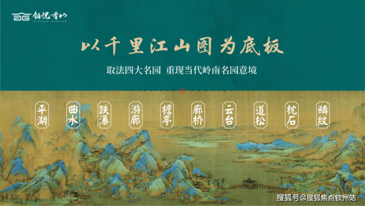 园林设计以《千里江山图》为灵感蓝本,巧妙融合岭南四大名园精髓,复刻佛山梁园"半边亭"。通过"漫卷云章"、"金水澜庭"、"琉璃水院"三进式景观轴线,呈现移步换景的东方美学。