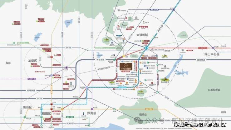 🏛约5公里范围:尽揽百万㎡商圈,星河COCOPark(龙岗山姆会员店)、大运天地、恒大城市之光、天光城等知名商业体环伺,畅享都市繁华便利。