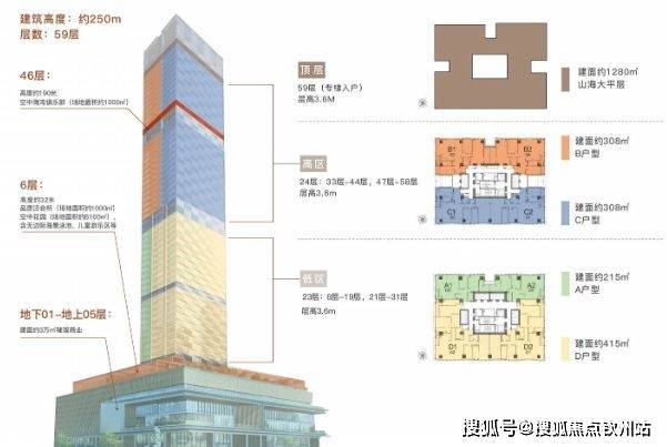 楼层高:59层(低区8-31层,高区33-58层避难层20/32层)