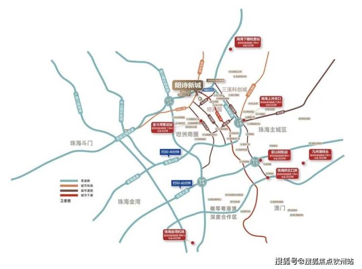 新城规划提速,珠中深度融合,枢纽核心地位凸显,提速珠港澳1小时生活圈,5分钟珠海主城,20分钟中山城区,25分钟抵澳门,40分钟抵港深