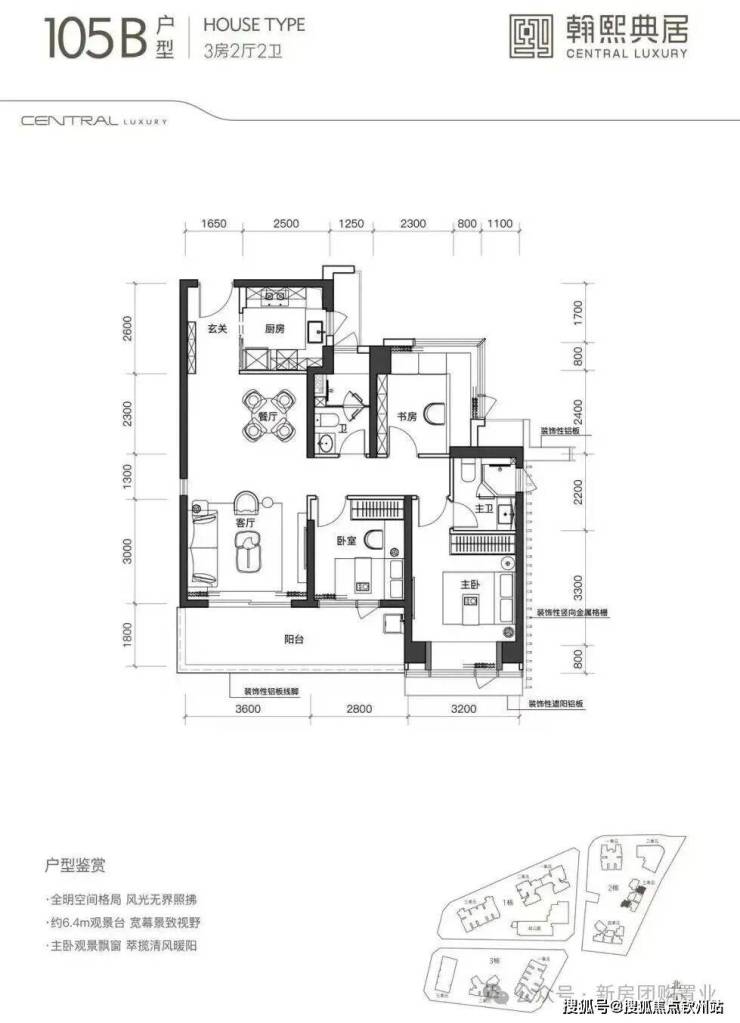 建面约105㎡的3房2厅2卫