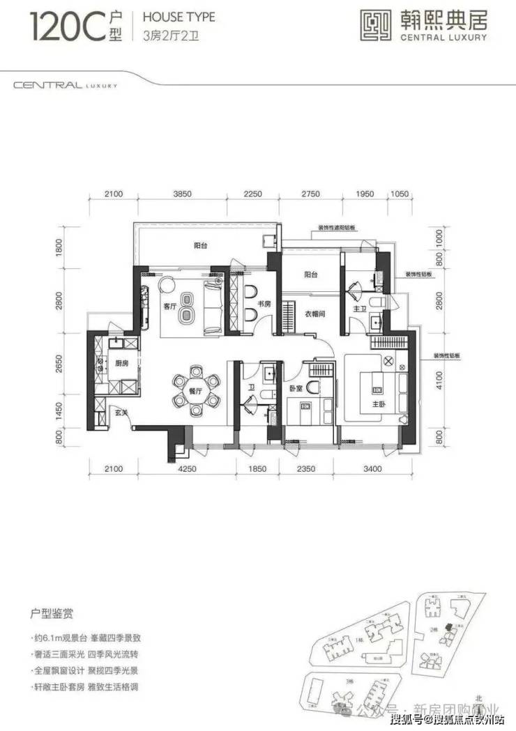 建面约120㎡的3+1房2厅2卫,