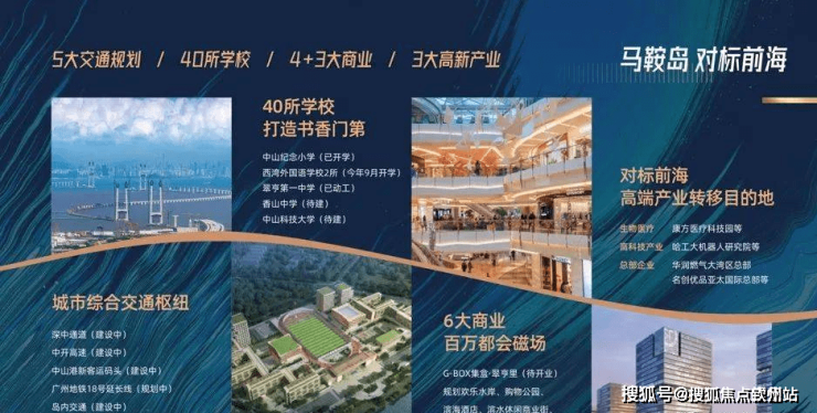 【产品信息】建筑面约69-163㎡滨海临湾美宅,建筑面约220㎡-249㎡一线海景大平层,建筑面积约30-66㎡灵动办公区位&交通;万科深业·湾中新城择址马鞍岛腹地,东部临海与深圳隔海相望。马鞍岛从交通、产业、城市建设等方面对标前海,承接深圳高端产业转移和资源外溢。【千亿热土】黄金内湾,以约大湾区30%的面积,贡献了超90%经济产值。马鞍岛作为黄金内湾的核心组成部分,把握战略机遇,同时为中山城市价值的制高点,未来城市新中心。