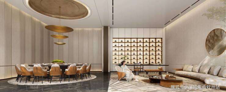 项目营销中心“缦”会馆未来将保留为业主专属会所,内部摆放多件艺术品:《玉・山》树脂雕塑,阳光透过玻璃洒下宛如“洒金”,寓意财源滚滚;《鎏金岁月》唐代铜板腐蚀艺术品彰显文化底蕴,旋转楼梯既是网红打卡点,更寓意“步步高升”。