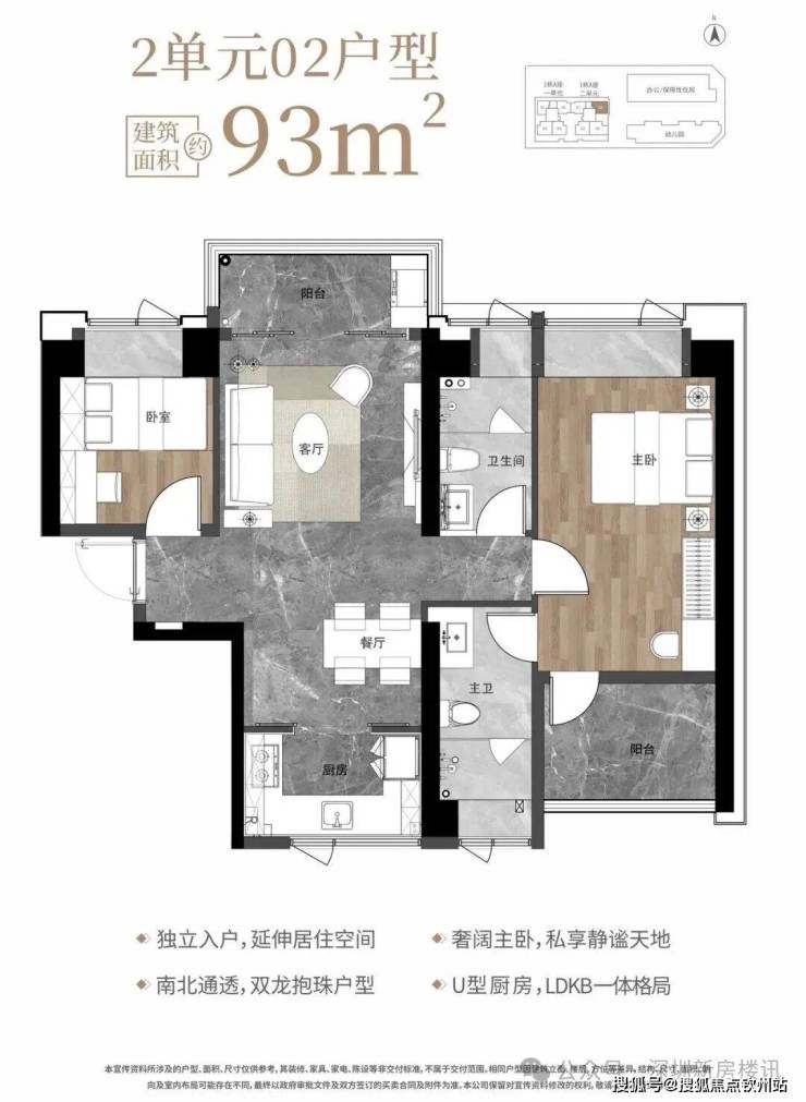 竖厅设计,主卧旁边“阳台”处实际可以做一个房间,主卧套房设计。
