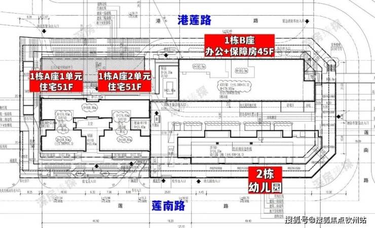 莲塘金岸里,由兆丰源公司打造,其背后股东主要是2家珠宝公司,总占地面积约0.82万㎡,总建筑面积约11.59万㎡,计容建筑面积约8.66万㎡,容积率9.62,绿化率40%,共由2栋45-51层高住宅组成,其中1栋A座1单元/2单元住宅51F,1栋B座办公+保障性住房45F,2栋是1所幼儿园。