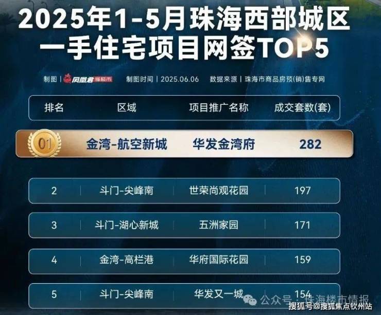 2025年1-5月珠海西部住宅网签冠军 数据来源:珠海市商品房预(销)售专网
