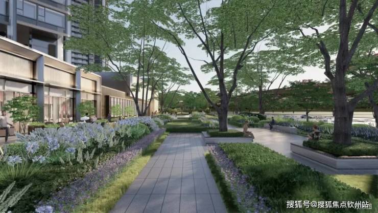 小区园林在设计上,引入公建立面元素,打造大气精工、尊贵典雅的标杆立面形象。采用现代精奢风格打造项目景观大门,从景观大门、风雨连廊、园林、架空层、大堂多重细节营造5重归家礼序;
