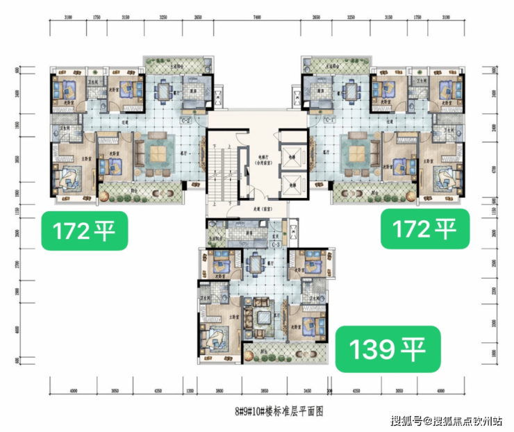 【洋房户型】三期高层98-172㎡三至四房;