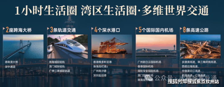 项目交通便利,海陆空全维立体交通便捷出行,周边涵盖2座跨海大桥+3条轨道交通+4个深水港口+5个国际机场+8条高速公路。项目1.5公里即达横琴口岸,5公里直抵长隆旅游区、珠机城轨横琴站,便捷湾区生活圈,多维交通链接世界。