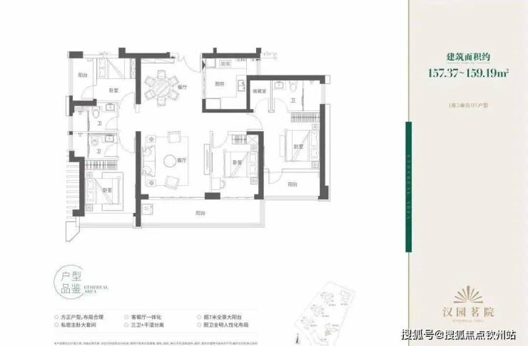 158㎡ 4+1房3卫折后总价 1100-1200万