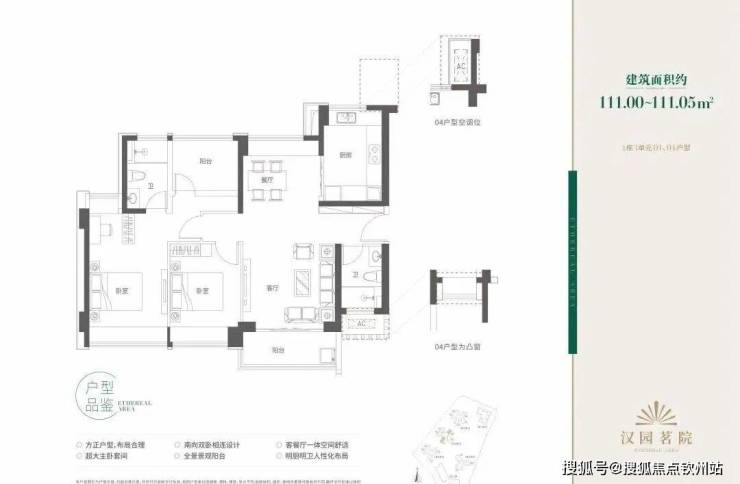 109-112 ㎡3房2厅2卫竖厅:经典竖厅布局,三、四单元,西北向,朝向地铁和城市道路,道路噪音对户型影响较大,高层视野开阔可俯瞰长岭陂水库和西丽生态绿地,背面阳台和边上的储物间可调整为一个房间,赠送面积较多,餐客厅方正,户型整体没有硬伤