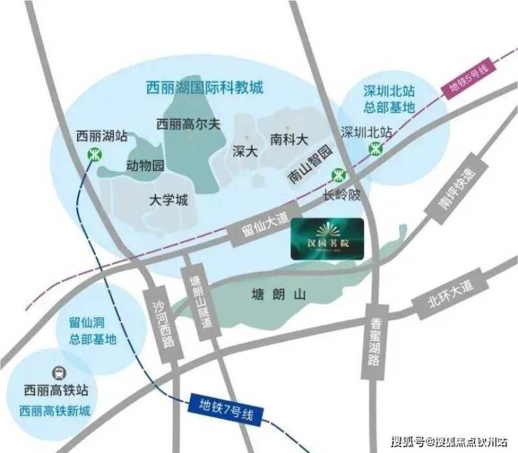 汉园茗院地处南山区西丽街道大学城片区,具体位于南方科技大学东侧、留仙大道旁,从板块定位来看,属于南山的 “边缘区域”,但交通优势却十分突出,成为项目的核心竞争力之一: