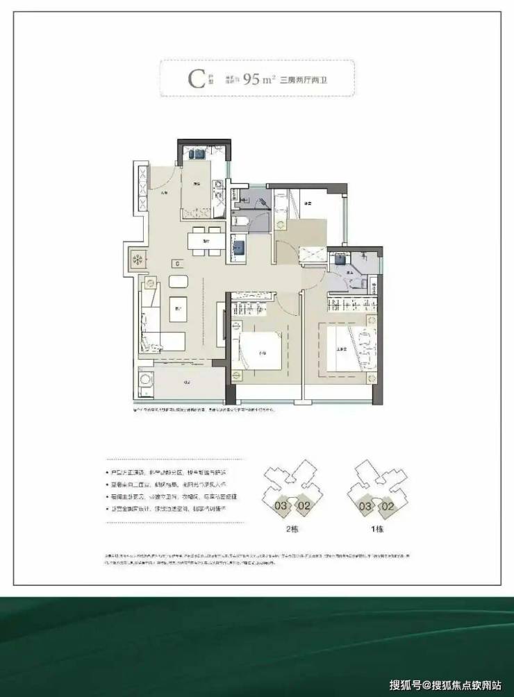 其中75㎡3房1卫124套;95㎡3房2卫186套,主力户型,三口之家改善首选;120㎡4房2卫62套,拥有6.7米超大阳台。
