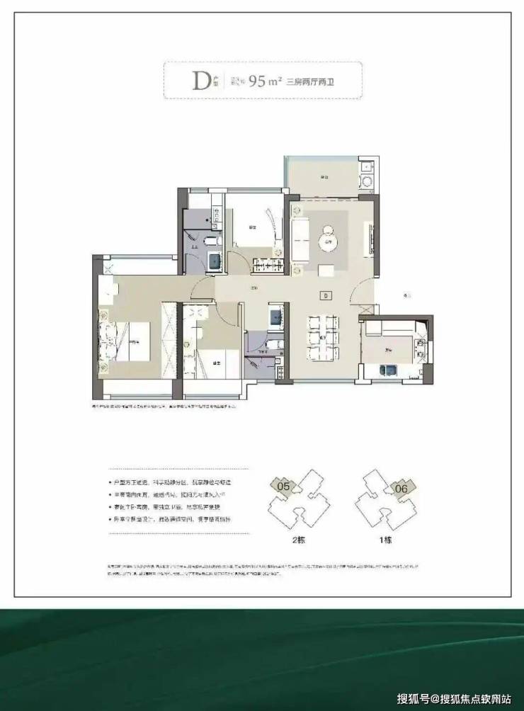 面积为75-120㎡三至四房,使用率超80%,高赠送,三开间朝南。