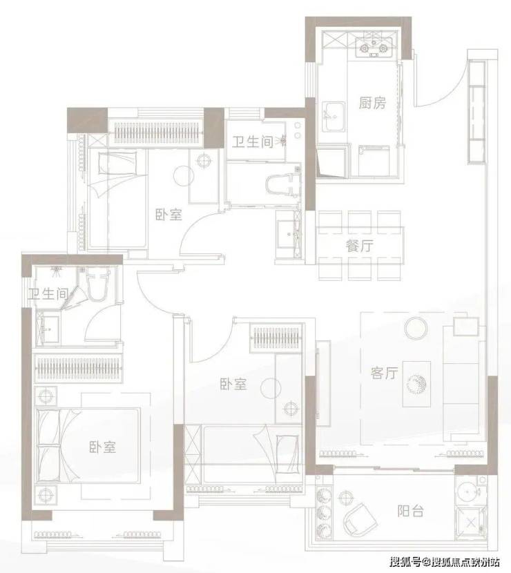 建面约79㎡ 3房2厅1卫