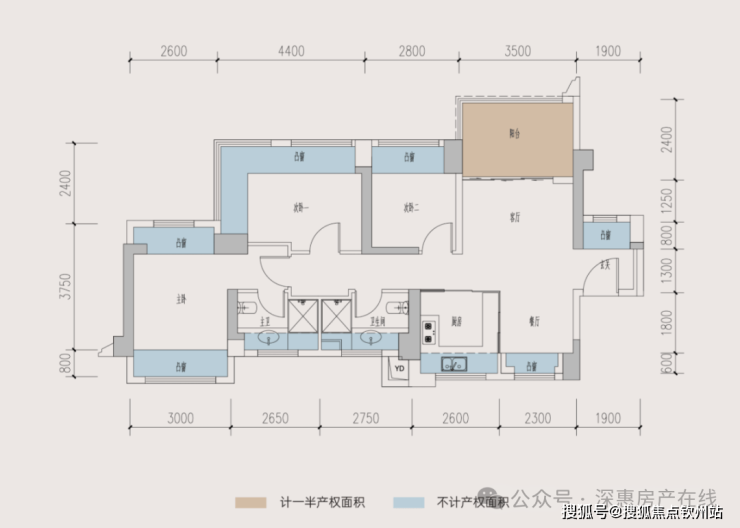 竖厅格局,客厅3.5米开间,三开间朝南,主卧南北通透设计,3个卧室分别做到了主卧14.5㎡/次卧8.37㎡/次卧7.44㎡(含飘窗),得房率约:77.3-77.39%(不含赠送),东南朝向。加上赠送得房率98.29%。