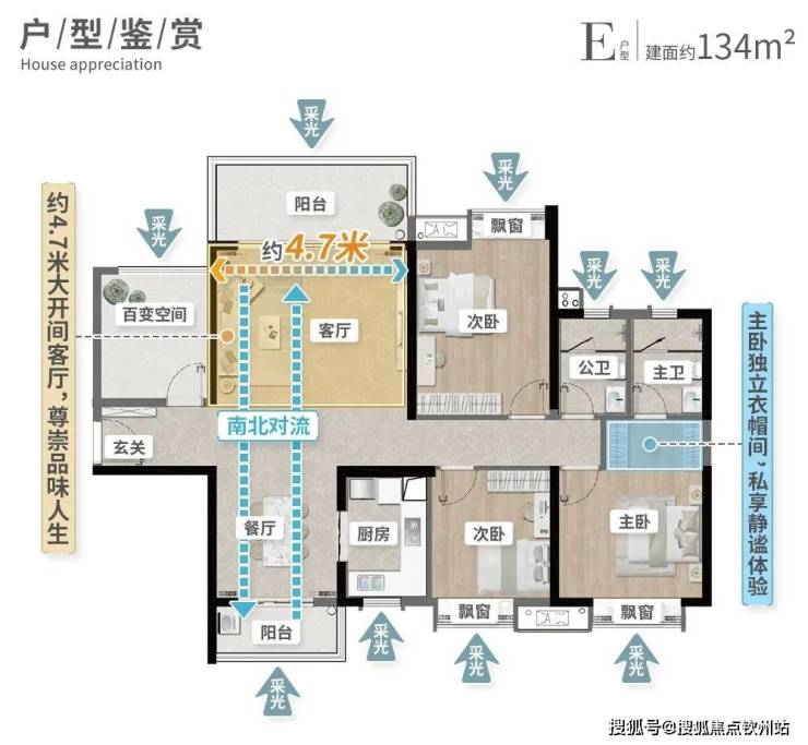 进阶人士首选,当属这个建面约134㎡的阔绰四房。客厅开间足足约4.7米,家庭聚会、商务宴客,或者日常居家,轻松承载任何幸福场景。