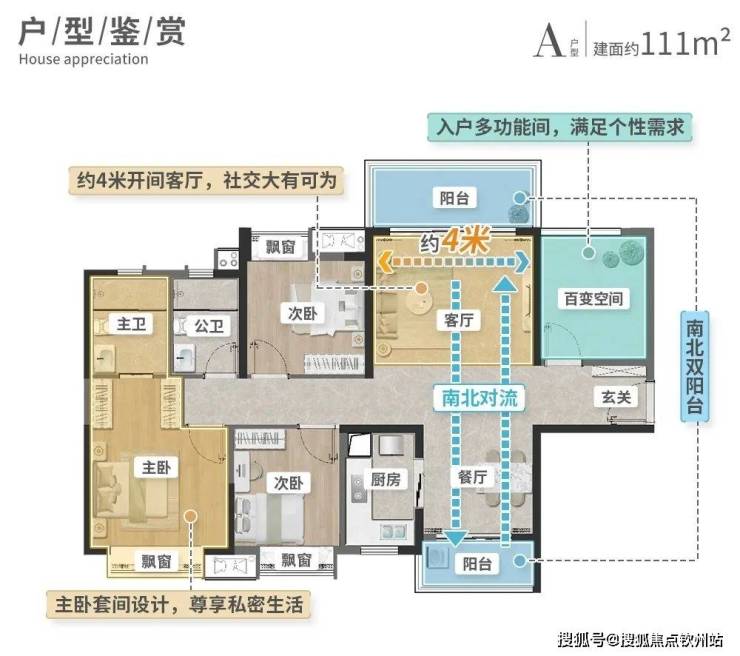 建面约111㎡品质四房,为108㎡户型的升级版,舒适度和景观度双倍升级。