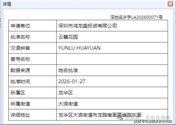最新消息,鸿荣源赖屋山项目取名:云麓花园,申请主体为深圳鸿龙盛投资有限公司