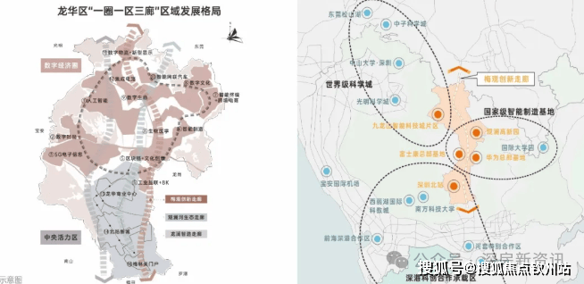 龙华区是深圳"十四五"规划三大都市核芯区之一,南连福田,北接东莞。项目位于梅观产业创新走廊轴芯,周边汇聚华为、富士康等世界500强企业,产业资源丰富。