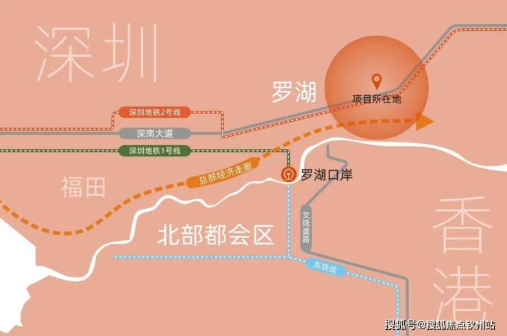 罗湖位于深港互动圈前沿,邻近香港“北部都会区”,引入香港东铁,实施“一地两检”,打造深圳火车站-罗湖口岸片区,罗湖将成为深港轨道中枢。项目近邻罗湖口岸,与香港高效通勤,坐享深港都市圈发展红利。
